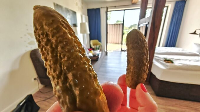 Das ist kein übertriebenes Bild. Man kann dort tatsächlich eine Stunde lang verschiedene Sorten probieren, ohne sich zu wiederholen. Gewürzgurken, Salzgurken, Senfgurken, Knoblauchgurken, Gurkenmit Currynote. Dazu Gurkensaft, Gurkenlikör und die berühmte einzelne Gurke in der Dose als Souvenir.